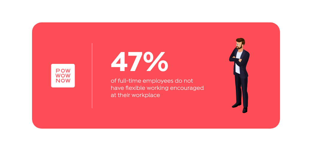 - 47% of full time employees do not have flexible working encouraged at their workplace